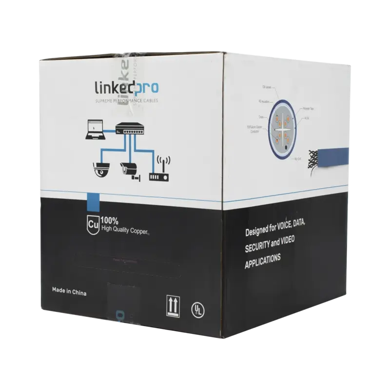 Bobina de cable de 305 metros Cat6+ Blindado F-UTP, CM, CALIBRE 23 ALTO RENDIMIENTO, ETL,UL, color azul, super flexible, para aplicaciones de video vigilancia, video HD, y redes de datos. Uso interior.