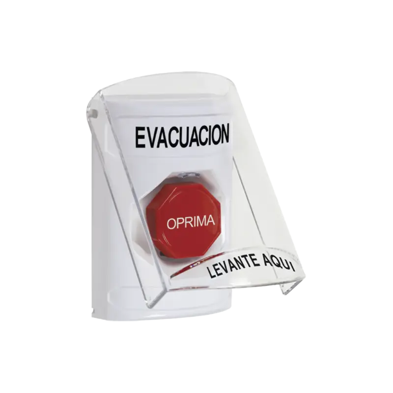Botón de Evacuación, Texto en Español, Tapa Protectora de Po