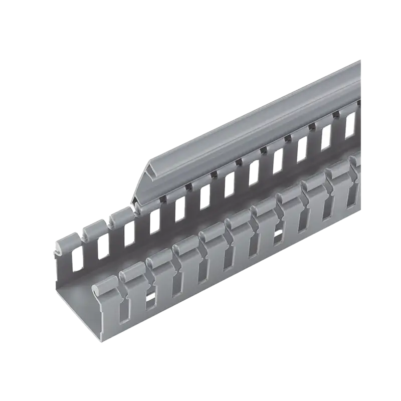 Panduct™ Canaleta Ranurada de PVC sin Tapa, Tipo H (Tapa Abisagrada), 55.1 mm de Ancho, 50.3 mm de Alto y 1828.8 mm de Largo, Color Gris