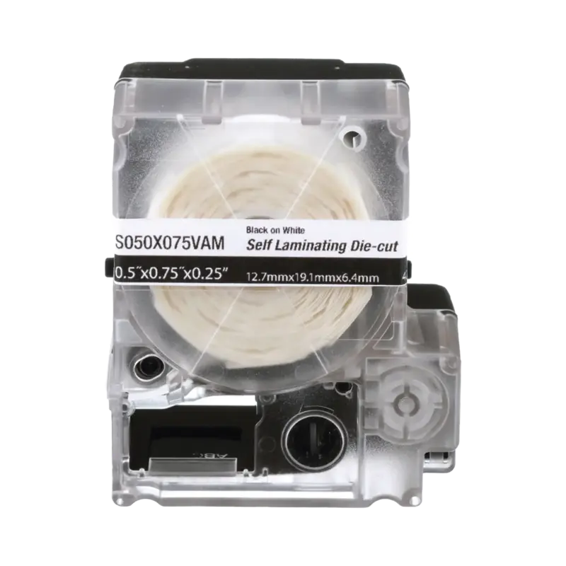 Casete de 300 Etiquetas Autolaminadas de 19.1 x 25.4 mm, para Cables de 2 a 4 mm de Diámetro, Área de Impresión Color Blanco