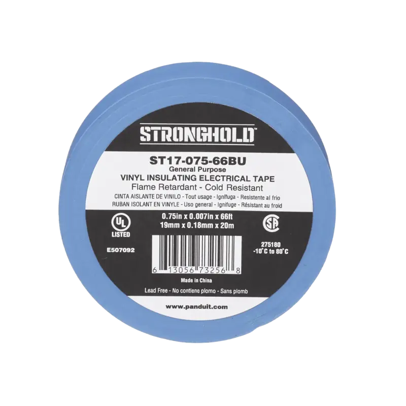 Cinta Eléctrica STRONGHOLD para Aislar, de PVC, Uso General Reparación y Mantenimiento, Grosor de 0.18mm 7 mil, Ancho de 19mm, y 20.12m de Largo, Color Azul