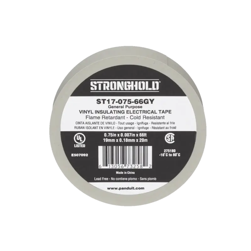 Cinta Eléctrica STRONGHOLD para Aislar, de PVC, Uso General Reparación y Mantenimiento, Grosor de 0.18mm 7 mil, Ancho de 19mm, y 20.12m de Largo, Color Gris
