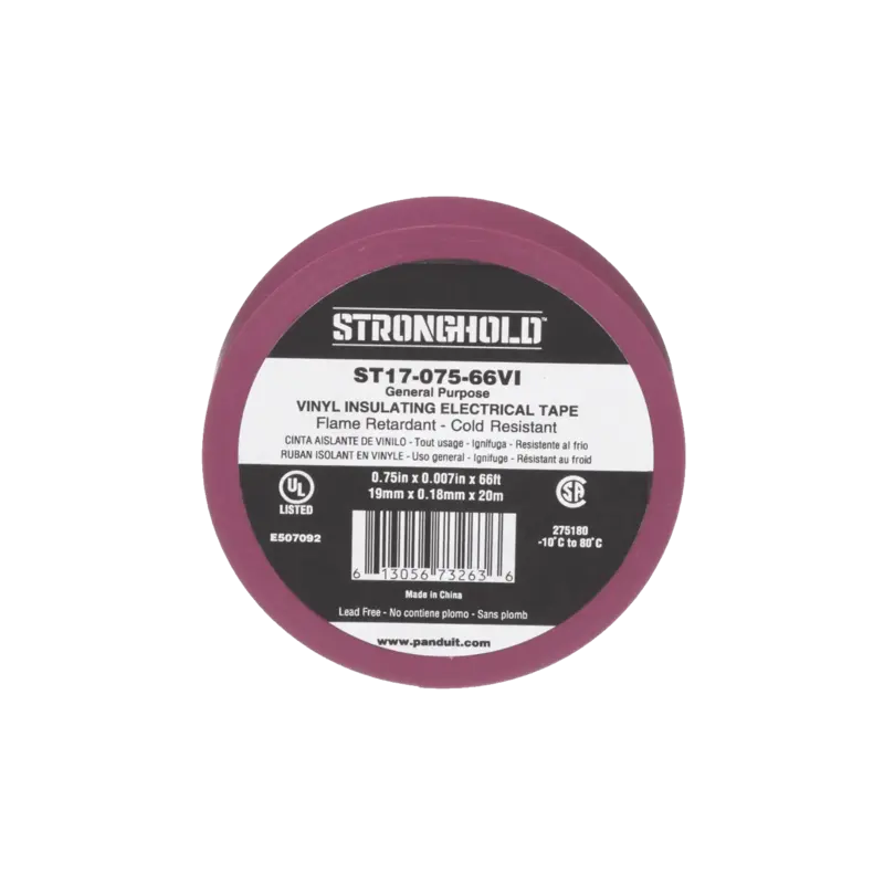 Cinta Eléctrica STRONGHOLD para Aislar, de PVC, Uso General Reparación y Mantenimiento, Grosor de 0.18mm 7 mil, Ancho de 19mm, y 20.12m de Largo, Color Violeta