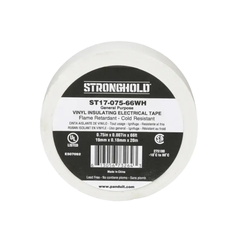 Cinta Eléctrica STRONGHOLD para Aislar, de PVC, Uso General Reparación y Mantenimiento, Grosor de 0.18mm 7 mil, Ancho de 19mm, y 20.12m de Largo, Color Blanco