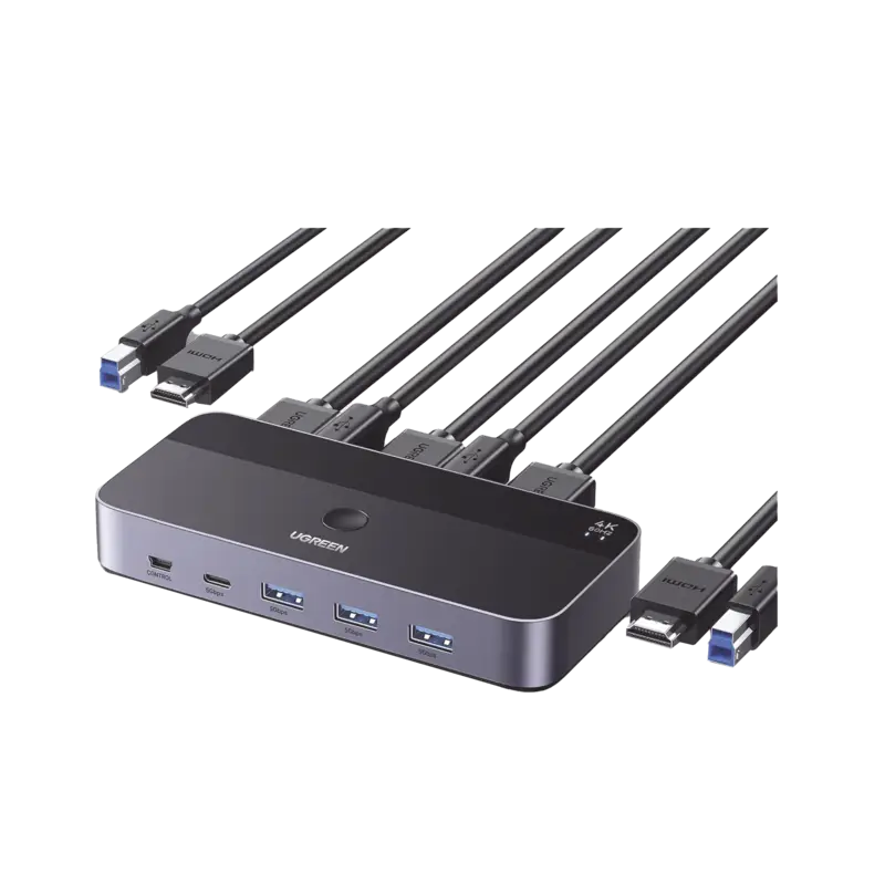 Conmutador KVM HDMI 4K – HDMI 2.0 – 2 Entradas 1 Salida – 4 Puertos USB 3.0 3 USB-A *1 USB-C – Soporta 4K@60Hz – HDR – Indicador Led – Compatible Win, MacOs y Linux – Carcasa de Aluminio.
