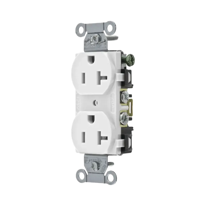 Contacto Dúplex 20 A, 125 V, 2 Polos, 3 Hilos, Cableado Posterior y Lateral, Color Blanco Nema 5-20R.