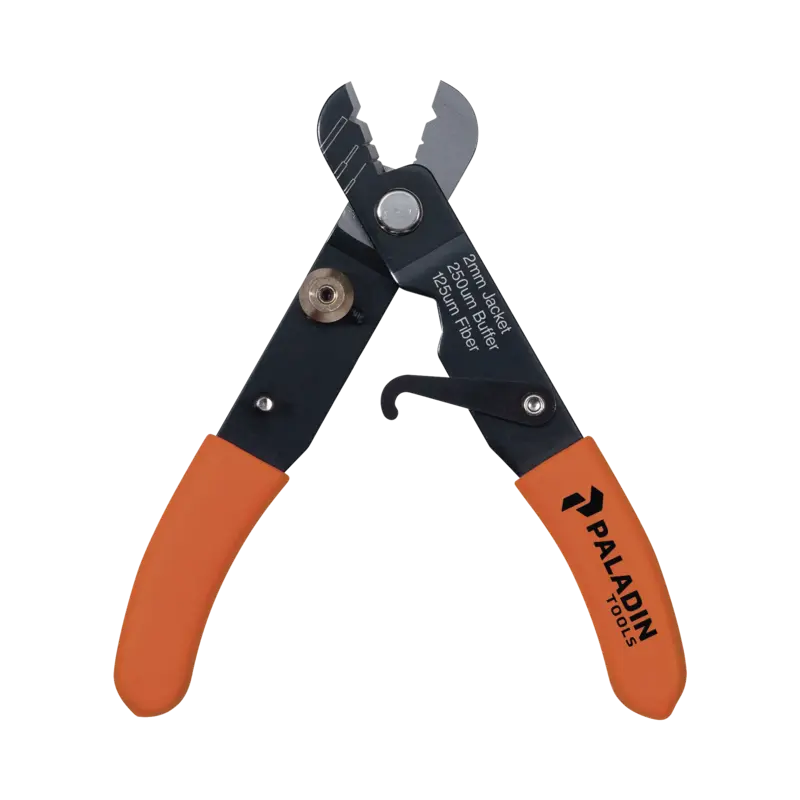 El PA1162 es un desforrador de fibra optica de Tempo Communications de 3 niveles. Esta herramienta es para pelar cables de fibra optica de 2.0 a 3.0 mm y presenta manijas de goma con un mecanismo de bloqueo para seguridad y transporte.