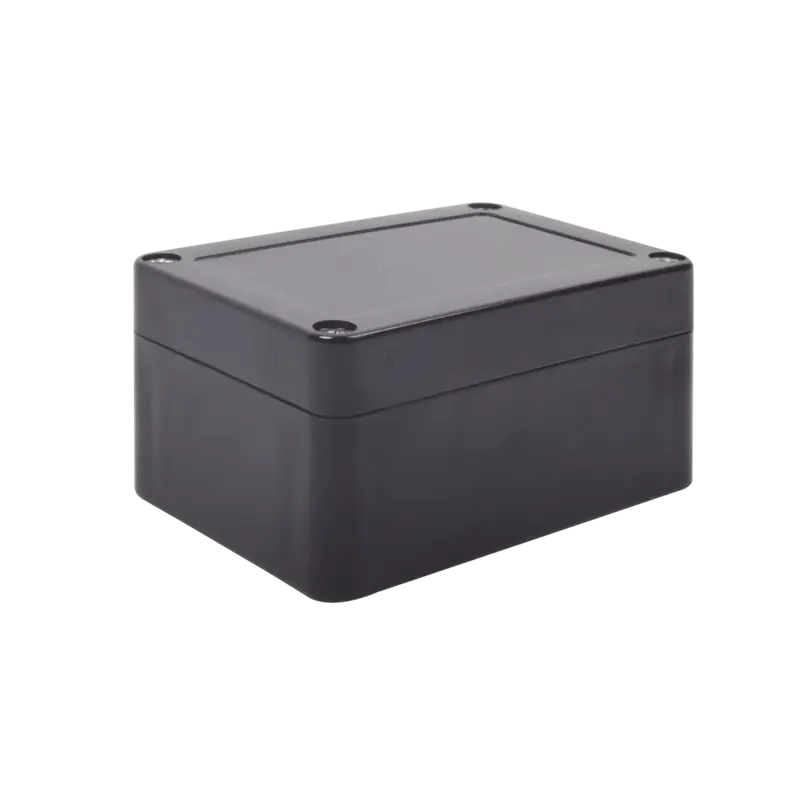Gabinete Plástico Negro para Exterior IP65 de 100 x 68 x 50 mm Cierre por Tornillos.