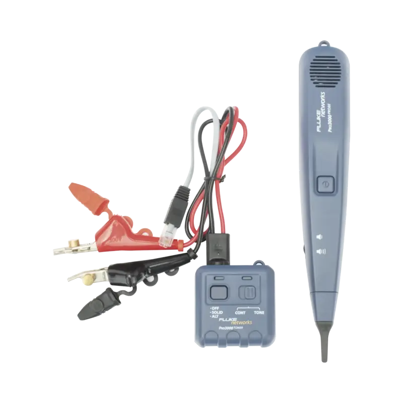 La serie de generador y sonda de tonos Pro3000™ proporciona una localizacion clara y precisa del cableado de comunicaciones. La innovadora sonda con filtrado obstruye las interferencias de señal en el entorno (causadas por cables de alimentacion y lamparas) cuando se escucha un tono. El potente altavoz de la sonda hace que el rastreo de cables a traves de las paredes, madera y otros materiales sea rapido y sencillo.