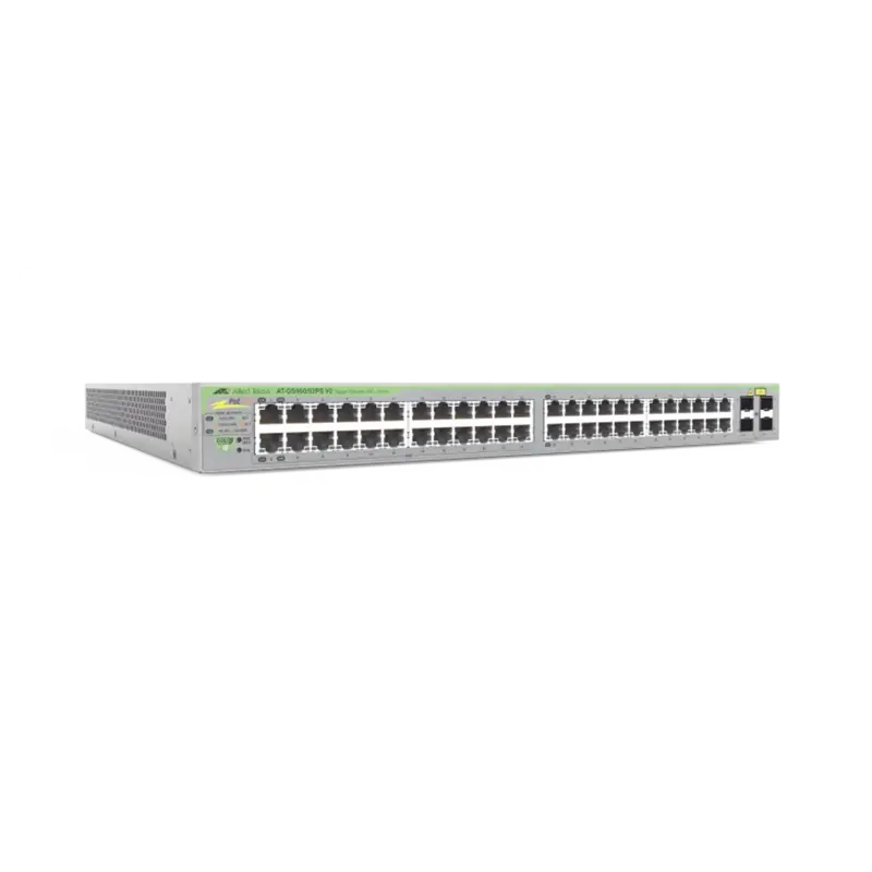 El conmutador Allied Telesis GS950/52PS V2 Gigabit PoE+ WebSmart cuenta con 48 puertos 10/100/1000T y cuatro puertos SFP, que ofrecen hasta 30 vatios por puerto (PoE+) para soportar camaras de videovigilancia, puntos de acceso inalambricos, telefonos IP y otros puertos alimentados por PoE. dispositivos. PoE+ elimina la necesidad de cableado de alimentacion separado y minimiza el desorden de fuentes de alimentacion y adaptadores para una implementacion simplificada.