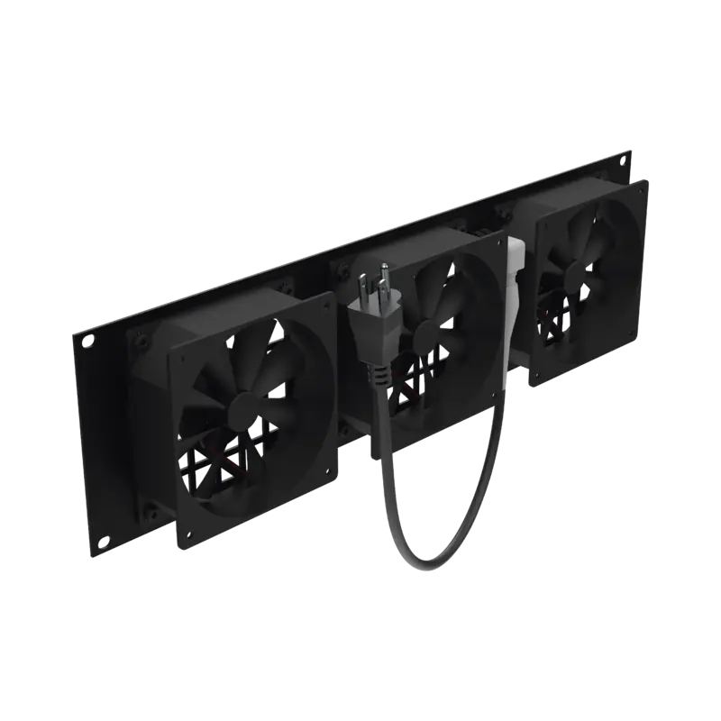 Kit de 3 Ventilador 110 Vca 12 x 12 cm con Clavija 5-15P. Para instalación en Postes Rack