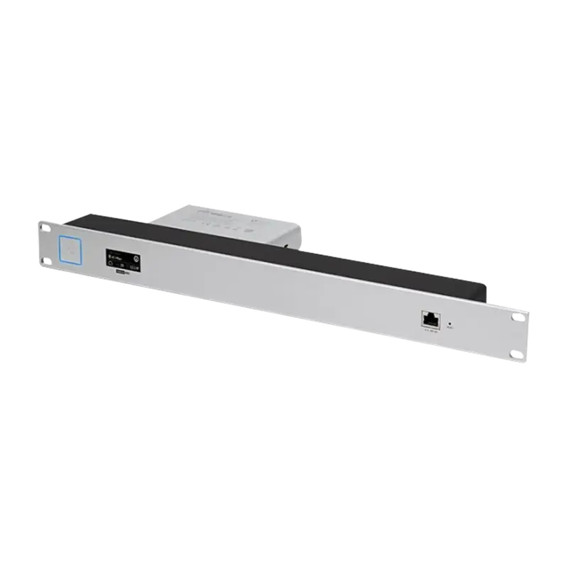 Montaje para CloudKey G2 (UCK-G2) o CloudKey G2 Plus (UCK-G2-PLUS) en un rack de 19 “con este accesorio. El UCK-G2 y UCK-G2-PLUS se aseguran firmemente en la parte posterior del Accesorio de montaje en rack para una instalacion limpia y segura. La pantalla del panel frontal, el conector Ethernet RJ45, el boton de reinicio y el LED de estado estan expuestos en el panel frontal para un facil acceso.