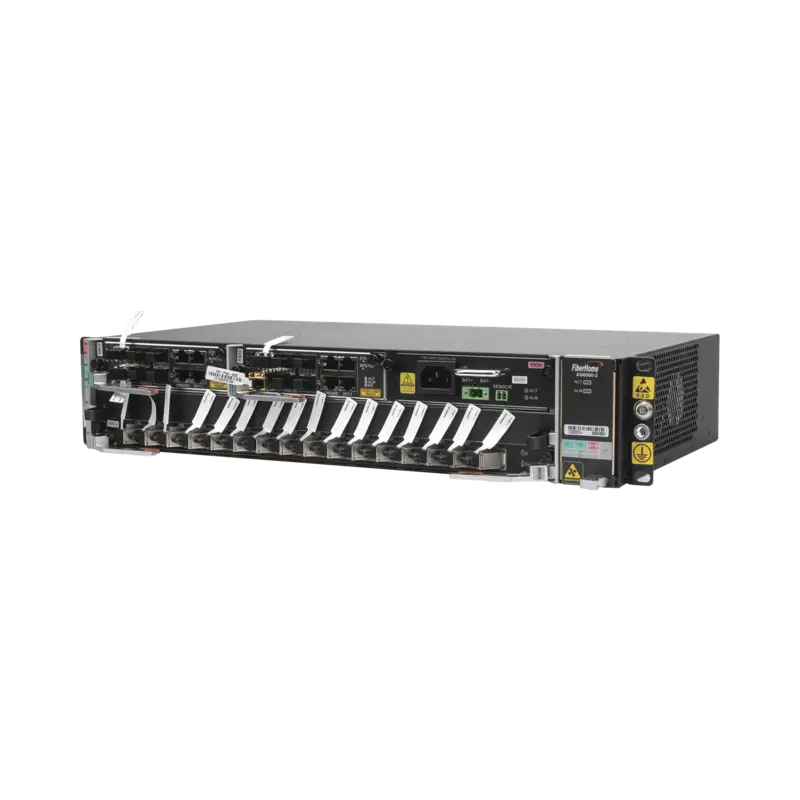 La OLT AN6000-2-AC de FiberHome es un equipo compacto de alto rendimiento. Cuenta con 2 ranuras de servicio permitiendo un crecimiento modular e incluye una tarjeta de servicio de 16 puertos GPON. Cumple con las normas internacionales ITU-T G.984 y IEEE 802.3ah.