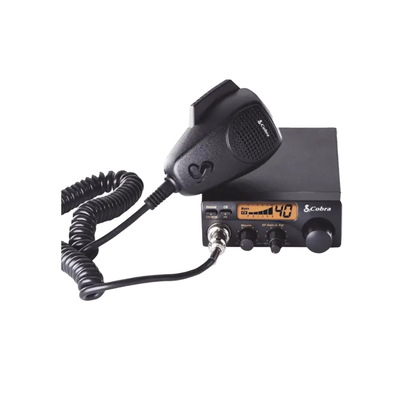 Radio móvil en banda CB de 40 canales en modulación AM con pantalla monocromática y función de PA
