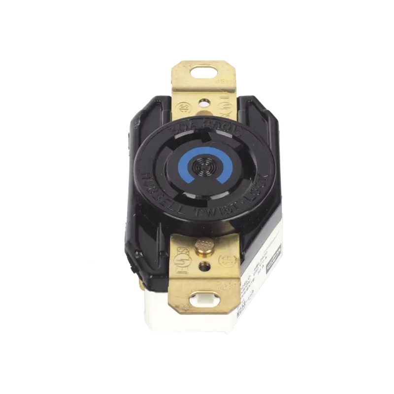 Receptáculo de Media Vuelta Industrial 30 A 250 V CA 2 Polos 3 Hilos Nema L6-30R Color Negro.