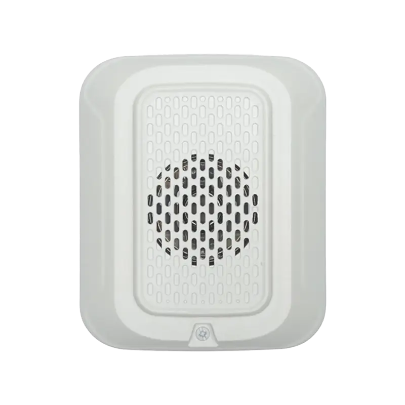 Sirena de Baja Frecuencia – Montaje en Pared – 12 o 24 Vcd – Color Blanco