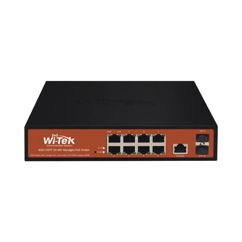 Switch Administrable de 8 puertos Gigabit Ethernet con PoE 802.3 af/at y 24V Pasivo + 2 SFP Gigabit, 150 W