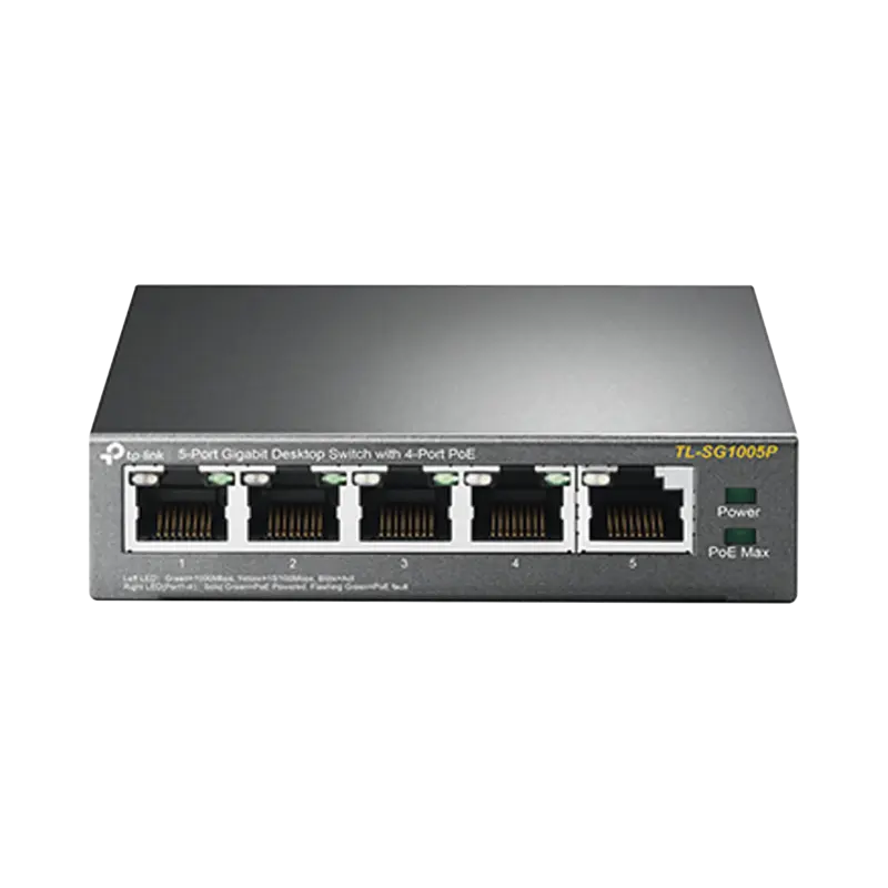 Switch Escritorio No Administrable de 5 puertos 10-100-1000 Mbps – Con 4 puertos PoE 802.3af-at de hasta 65 W – PoE Extendido hasta 250 metros