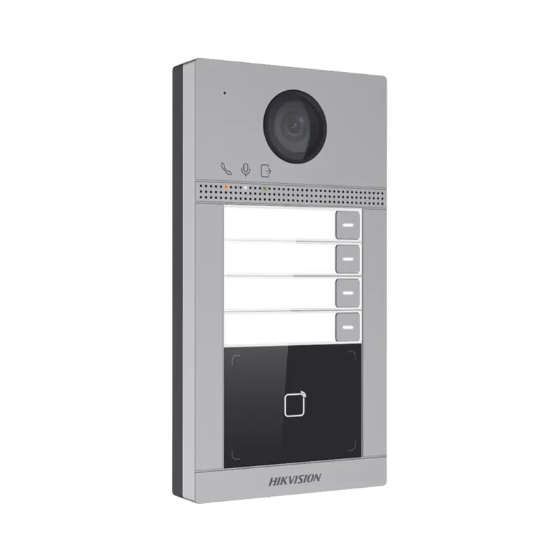 Videoportero IP 2 Megapixel – Llamada y Apertura Remota desde App Hik-Connect -Requiere monitor — PoE – Exterior IP65 + Antivandalico IK08 – 4 Departamento – Apertura con Tarjeta – Soporta 2 Puertas y hasta 6 Monitores