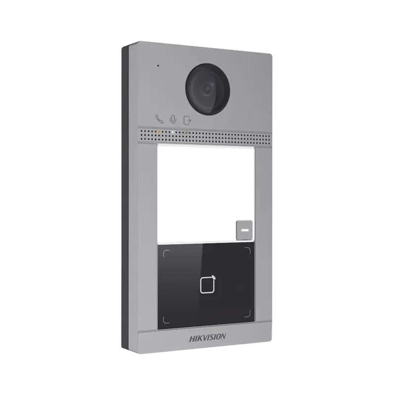 Videoportero IP 2 Megapixel – Llamada y Apertura Remota desde App Hik-Connect – PoE – Exterior IP65 + Antivandalico IK08 – 1 Departamento – Apertura con Tarjeta – Soporta 2 Puertas y hasta 6 Monitores